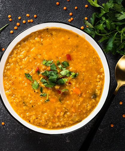 Plonge-toi dans une ambiance indienne avec ce dahl ! Associé à du riz, tu obtiens le duo gagnant pour faire le plein de protéines !